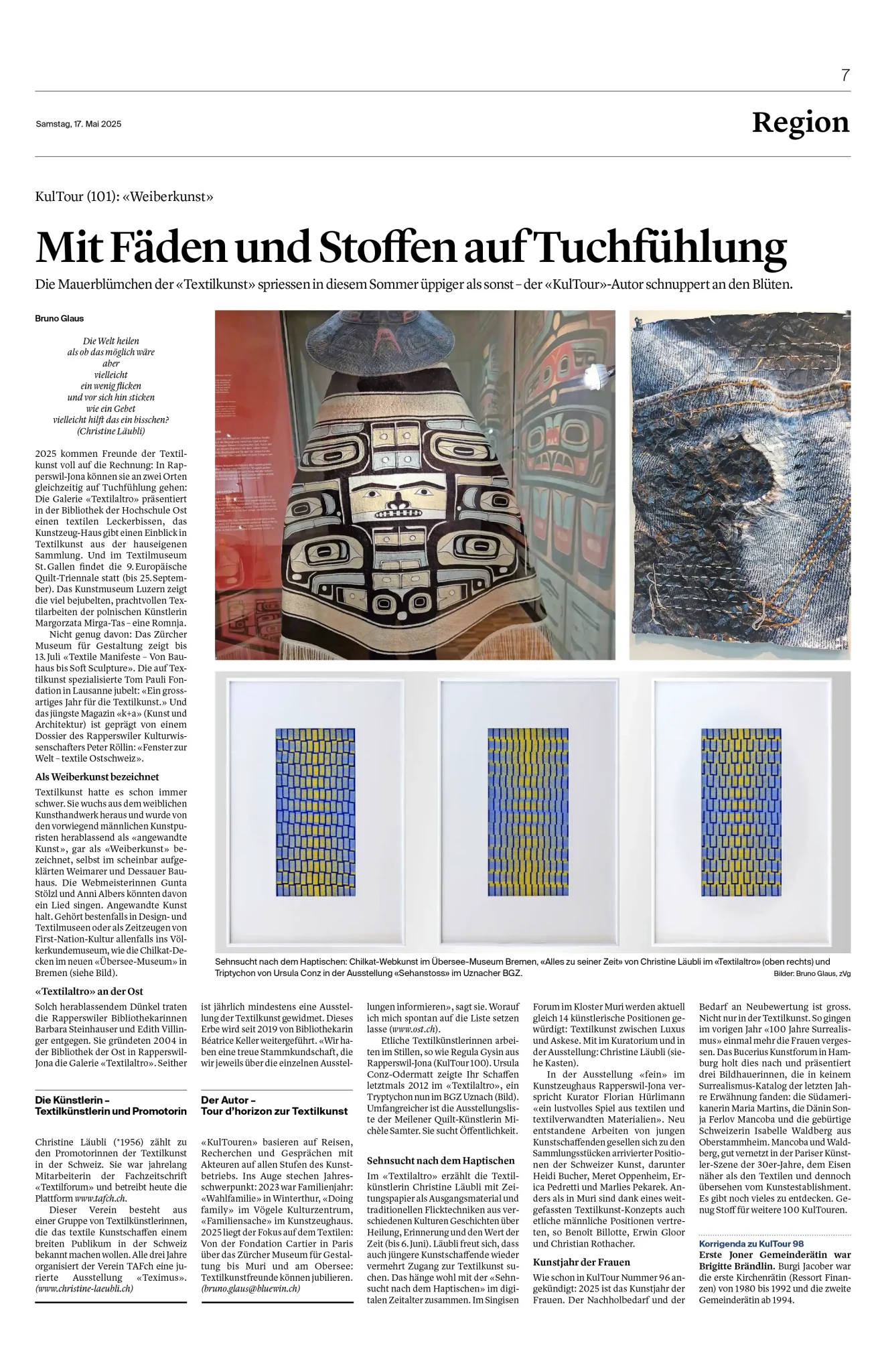 101. Textilkunst im «Textilaltro» in Rapperswil-Jona und das Frauenkunstjahr 2025